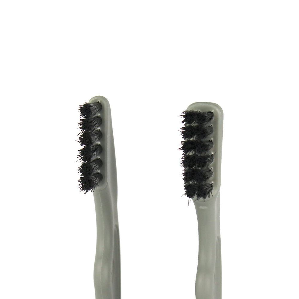 One brush with a double-row of bristles and one with a single-row.